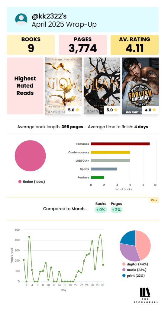 And that about brings us up to date. Before I go into sharing my April and May reading wrap up, I want to give a huge shout out to the lovely human, who took a risk and emailed me just to check in. Thank you for giving me a little push to come back. I’ve read both of your emails like a million times and they make me smile every time. Oh, and tell your husband that I said that you’re definitely not crazy for emailing a girl who lives across the world. He should be proud and, quite frankly, reward you for your big girl bravery. Just saying…lol…